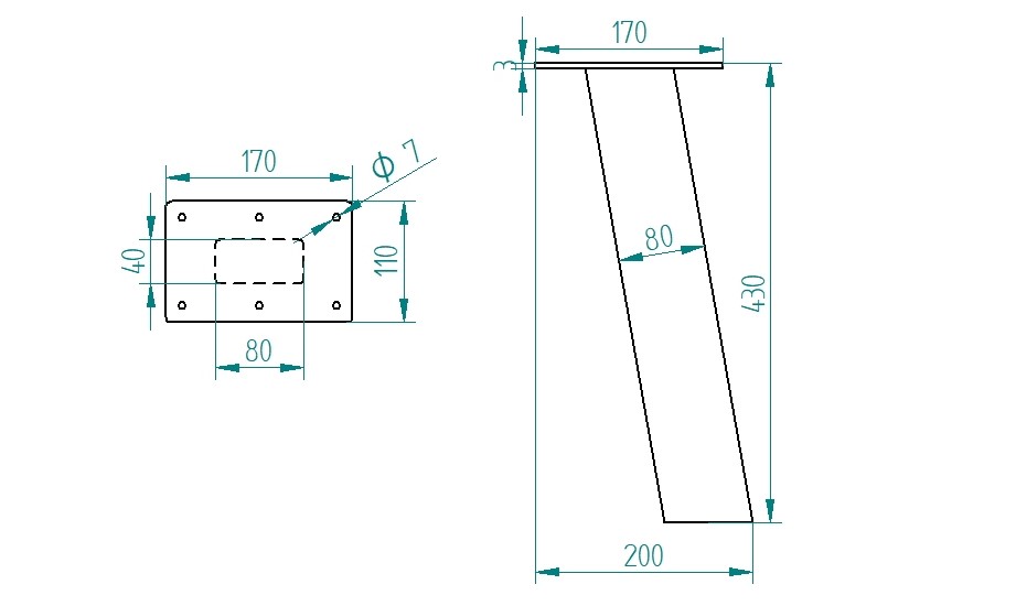Prostokątna szeroka podstawa o bokach 110 mm x 170 mm i grubości aż 3 mm pozwala na solidne przykręcenie jej blisko krawędzi blatu i przede wszystkim sprawi, że noga nie będzie się chwiała, tylko będzie solidnym fundamentem Twojego stołu.